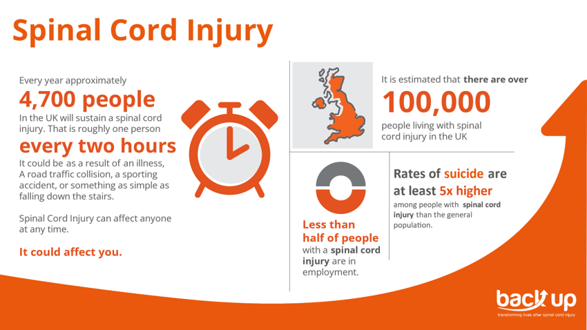 Back Up Trust is a UK-based national charity committed to supporting people who have sustained a spinal cord injury (SCI) as well as their families. Back Up is also the only UK spinal cord injury charity with specialist support for children and young people with SCI. Anyone can sustain a SCI, regardless of sex, ethnicity, age, or any other characteristic, and they can be sustained in a number of ways, including complications from medical conditions like cancer, medical malpractice, and accidents.